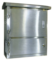 工程塑料外殼采用玻璃纖維增強不飽和聚酯樹脂材料,通過模具壓制而成,外形美觀。具有抗老化、不變形、抗沖擊、抗靜電、耐腐蝕等優點。產品顏色為綠色。不銹鋼的外殼通過模具落料、成型工藝加工而成,表面鏡面拋光處理,美觀大方。