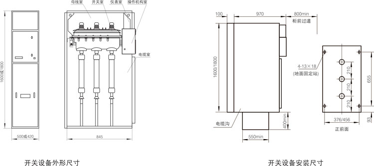儀表室位于開關設備的上部,室內可裝設電流表、電壓表、指示燈以及電動操作機構等。