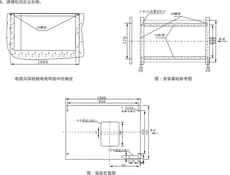 ◎ 將開關柜按順序放置于基礎上,調整好安裝的位置,然后用M12螺栓或者用點焊方法進行固定死,柜與柜間與M8螺栓并緊。